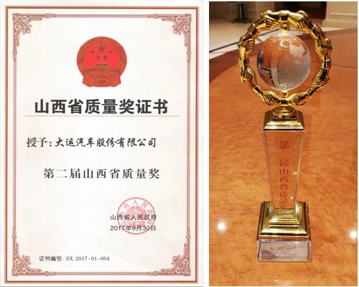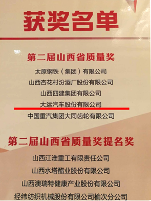 热烈祝贺:大运汽车股份有限公司获得“第二届山西省质量奖”殊荣