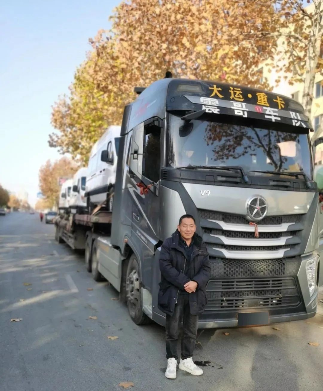 家住安徽的郭老板是一位有着20余年驾龄的老司机,之前开的是其他品牌的卡车,当看到大运V9的第一眼,郭老板就被它的外观深深的吸引了,后来经过试乘试驾体验及大运销售人员介绍的专项服务政策,促使其购买了大运V9,成为安徽第一批V9客户。