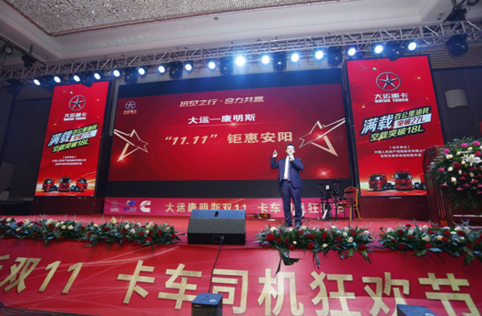 2018年11月11日,在这个全国人民都在淘宝抢购的日子,我们卡车人也在过属于自己的“双十一”。由安阳驰宇运输、安阳浩苍汽贸主办的“大运康明斯双十一卡车司机狂欢节”在安阳市华强诺华廷酒店举行,活动共邀请到480余名车主朋友,欢聚一堂,共享这卡车盛宴!