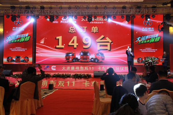 截止到8点整,订车停止。主持人公布数据,现场共计订车149台!这是一项卡车界“新生”的销售记录!20分钟149台!前所未有!