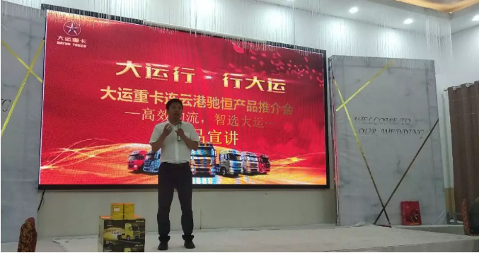 为进一步开拓连云港市场,提升大运重卡在连云港地区的品牌影响力和知名度,为我司产品及市场建立新的增长点注入新的活力。江苏运豪汽车销售有限公司携手连云港汽车销售有限公司在连云港赣榆区举办了以“高效物流 智选大运”为主题的“大运重卡连云港产品推介会”。此次活动邀请了连云港赣榆区赣马镇的各大物流公司老板及卡友,共计60余人到达现场。