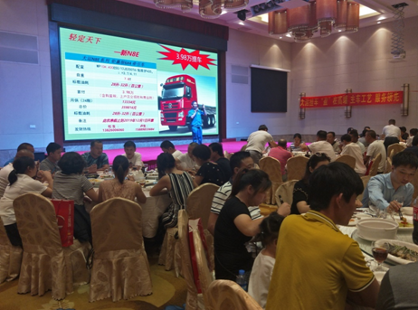 主持人宣布本次活动正式开始后,由梅州辉杭销售有限公司总经理黄总上台致中秋贺词,黄总首先欢迎了各位新老用户莅临本次活动现场,感谢新老用户一直对大运重卡的信任和支持,他说大运重卡进入梅州市场虽不到一年的时间,值得骄傲的是我们过去几个月订单持续增长,梅州辉杭的快速成长,是我们一起见证的,我们今后会用心卖好车,用我们每一分真挚服务,让您觉得买大运车,就是值了!