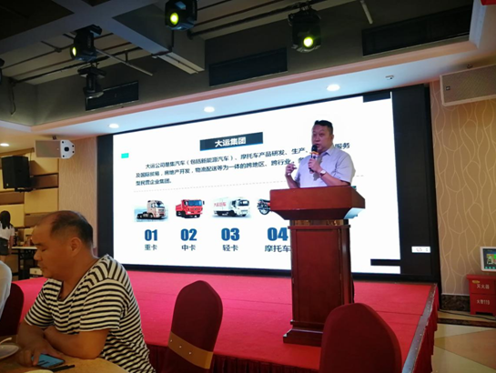 随后大运重卡大区经理姚鹏再次深情的表达了对用户的感恩之情。为用户讲述了大运重卡的发展历程,详细解读了终身质保服务政策,为现场用户介绍大运重卡推荐车型,并预祝各位来宾“开大运、行大运、交好运”。