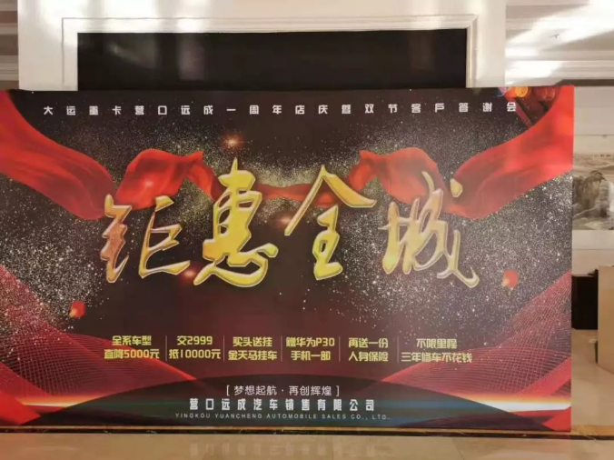 金风送爽、秋色宜人,中秋佳节刚刚过去,祖国七十华诞即将迎来。在这美好时节,大运重卡营口远成商家于2019年9月16日,隆重举行一周年店庆暨双节客户答谢会,活动到场295人,订车多台。康明斯(中国)沈阳分公司和平安租赁负责人到场参会,营口地区物流运输行业老板、司机、广大卡友们同聚一堂,活动在热烈的氛围中展开,并取得圆满成功。
