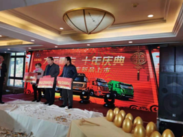 活动于上午10点58分准时开始,在一段靓丽、青春的开场舞后,首先由邢台金源汽贸陈总上台发表致辞,陈总感言到:今天是大运重卡十周年的生日,意义重大,感触很深。得益于大运公司的大力支持,让金源汽贸在邢台重卡行业占有一席之地。接下来的日子里,大运重卡和金源汽贸也会一如既往地给客户提供优质的产品、贴心的服务,为每一位客户提供全方位的支持,让大家使用大运重卡在挣钱的路上无后顾之忧。最后,陈总对莅临本次活动的物流行业的各位老板们以及广大司机师傅表示衷心的感谢。