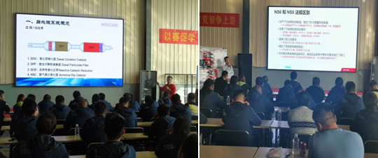 下午2点,潍柴应用工程中心市场支持业务部赵祥博和康明斯东亚培训中心培训师顾少航为大家进行了潍柴国六知识培训和康明斯国六产品技术介绍。
