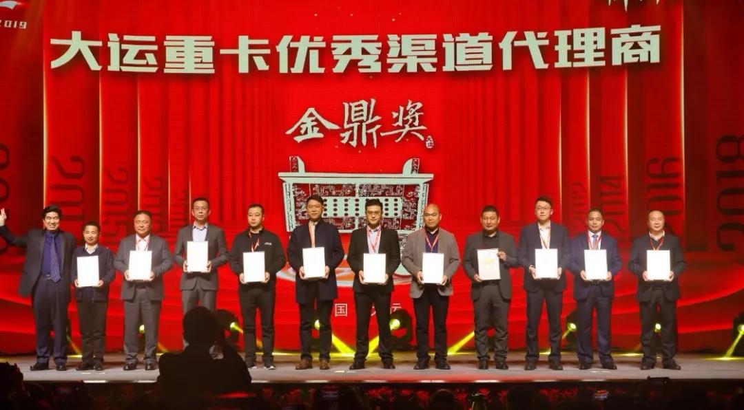 大运集团董事长远勤山为大运重卡优秀渠道代理商颁发金鼎奖