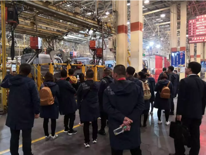 随后,一行客户依次参观了冲压、焊装、涂装、总装四大车间,全面了解了大运重卡从最初的型材冲压到整车下线的生产与装配整个过程。客户们时而驻足凝视,时而小声讨论,不仅对大运的先进技术、严谨作风大加赞赏,同时感叹大运重卡的技术与时俱进,产品愈加优质可靠。