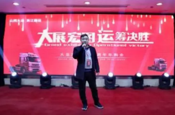 热烈的开场舞过后,山西大运销售副总经理刘卓志上台致辞,他首先对各位贵宾的到来表示热烈的欢迎和诚挚的感谢,并为大家讲述了大运重卡的发展历程和取得的骄人的成绩。最后提前献上了对现场嘉宾的新年祝福。