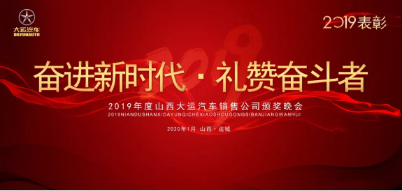 奋进新时代•礼赞奋斗者!2020年1月20日,2019年度山西大运汽车销售公司颁奖晚会圆满成功。2019年是大运汽车上市十周年,也是全体大运人热血奋斗,拼搏创新的丰收年。在充满竞争和挑战的市场环境里,大运人自强不息,众擎易举!大运汽车激流勇进,不负使命,不断创造新的胜利!