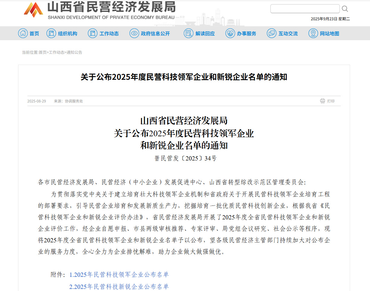 近日,省民营经济发展局公布了2025年度山西省民营科技领军、新锐企业名单,大运汽车股份有限公司凭借卓越的科技创新实力与行业引领地位,成功入选“2025年度民营科技领军企业”名单。